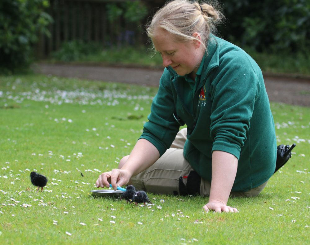 Keeper-Becky-hand-feeding-the-Purple-Gallinule-chicks-at-Paradise-Park-Hayle.jpg